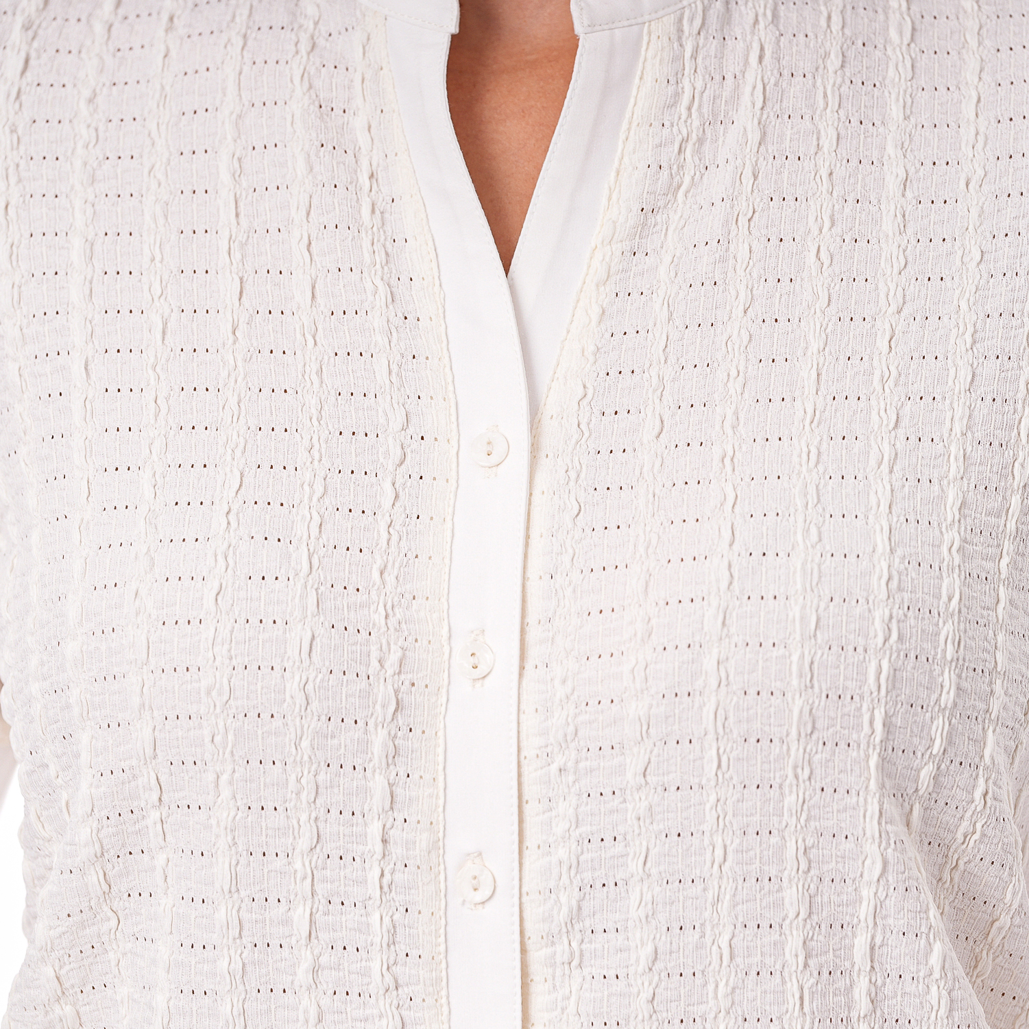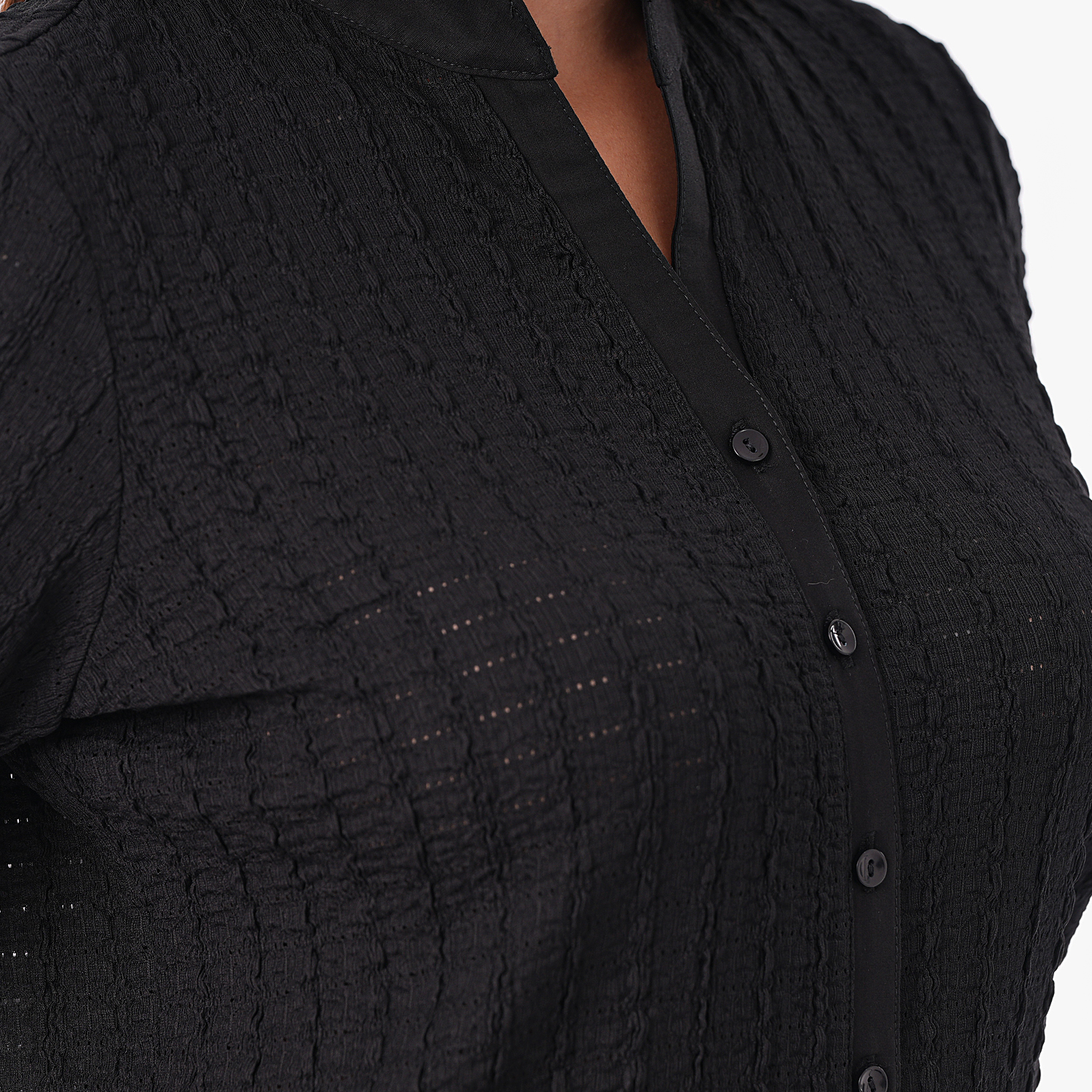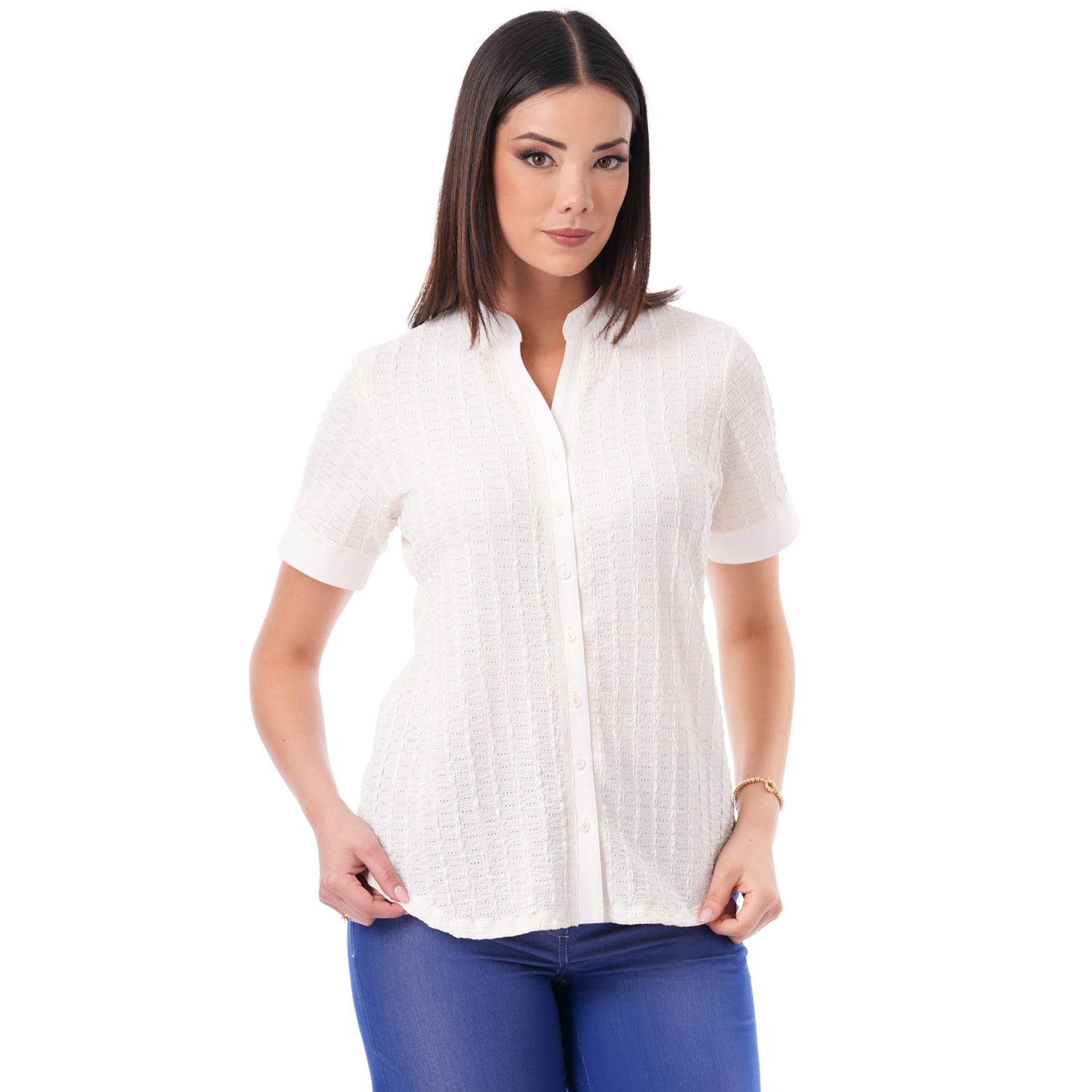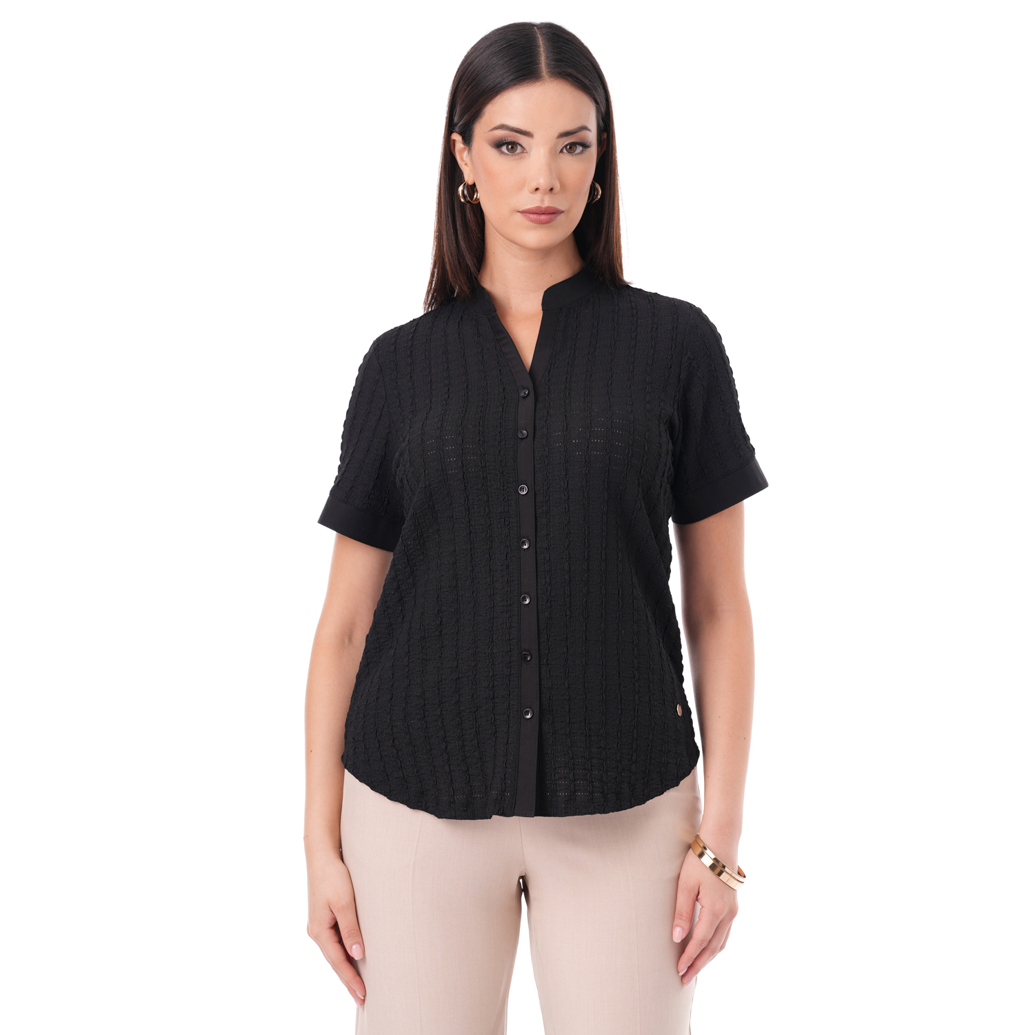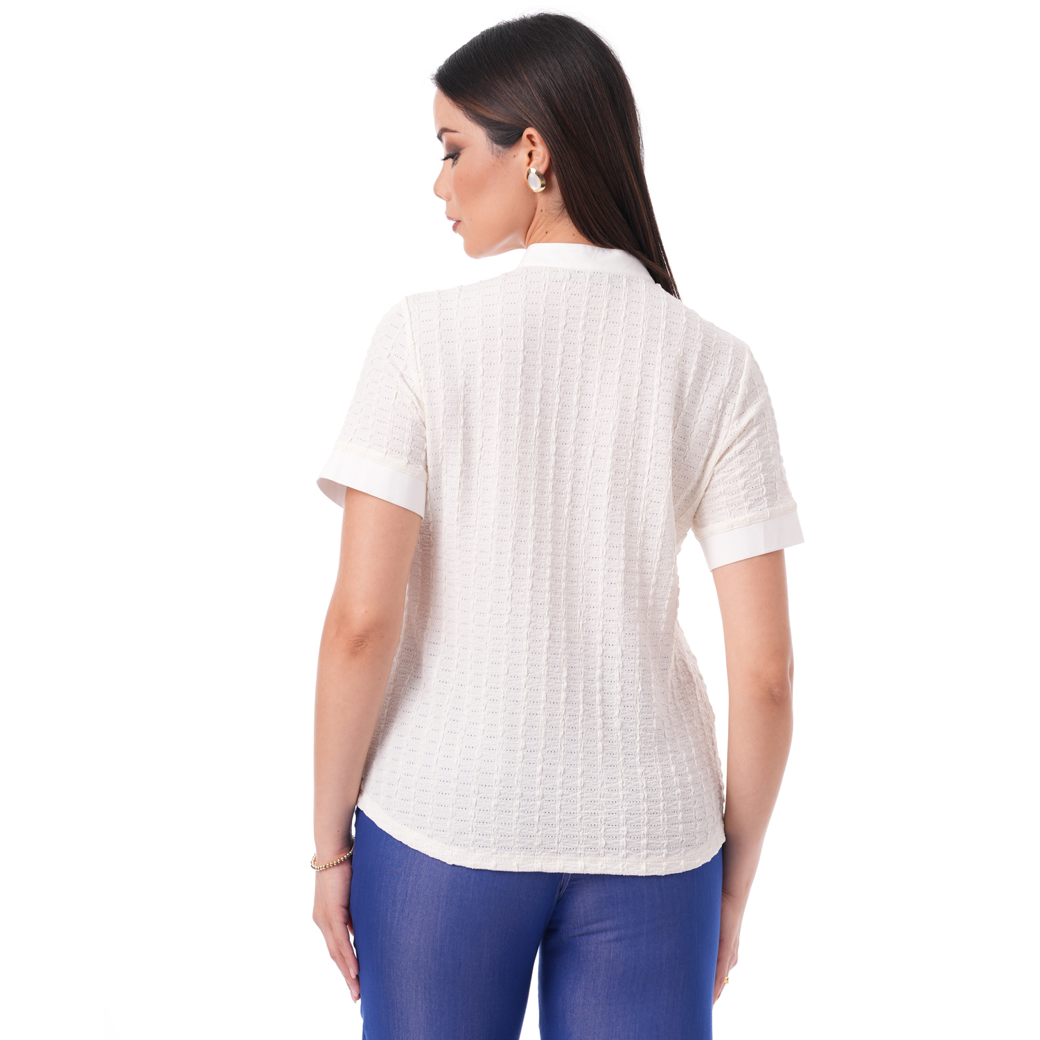 Esta blusa de color entero con detalles en la tela, es ideal para darle un toque especial a tus looks.