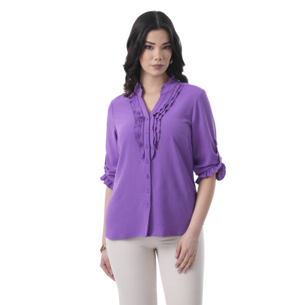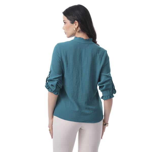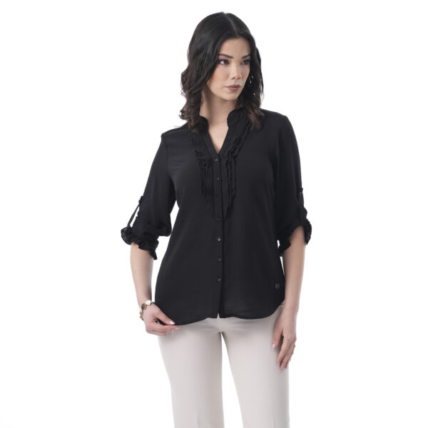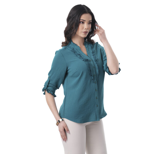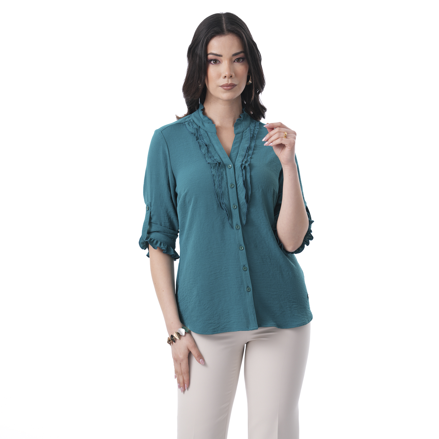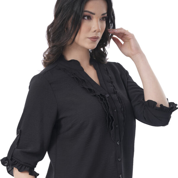 Esta blusa de diseño clásico y versátil se convierte en un básico infaltable en tu guardarropa. Su silueta femenina y elegante la hace perfecta para crear looks tanto casuales como sofisticados.