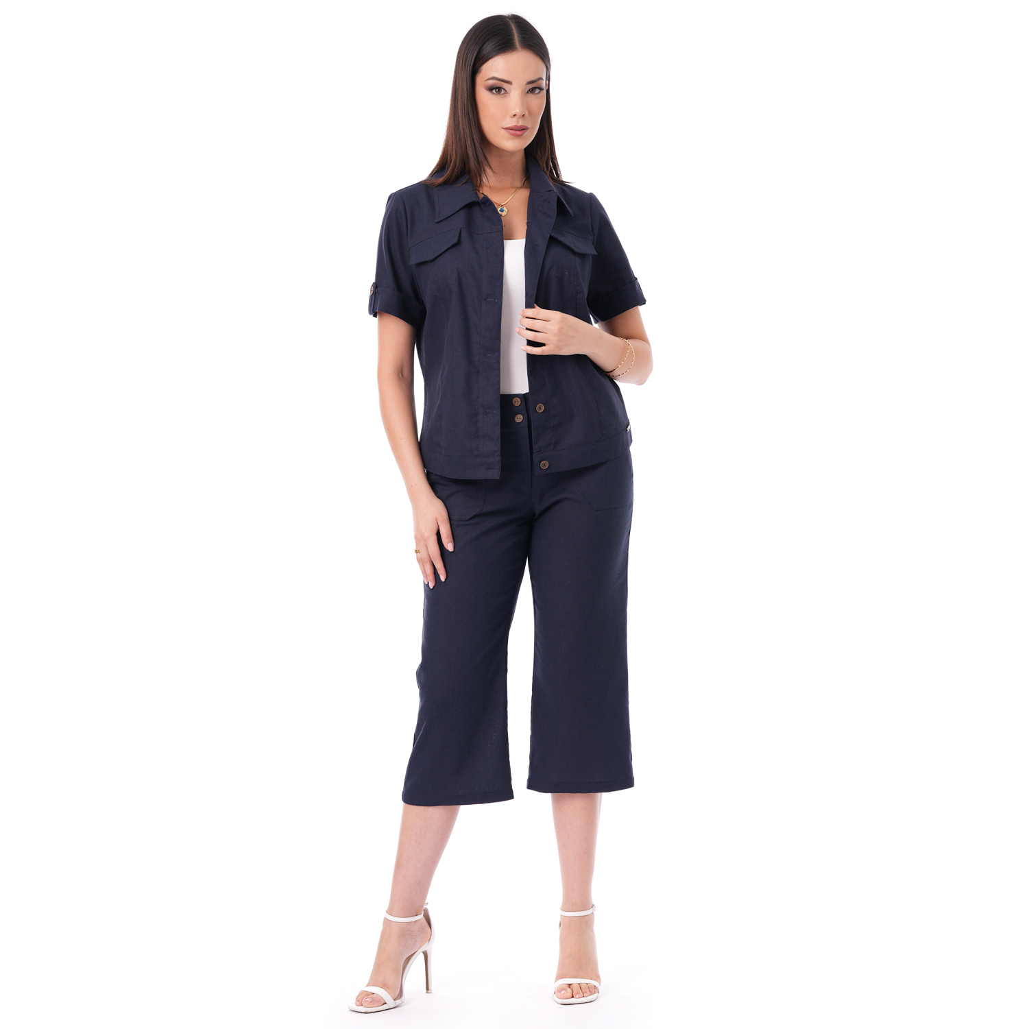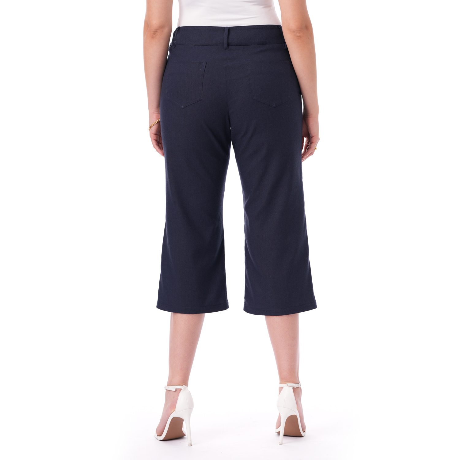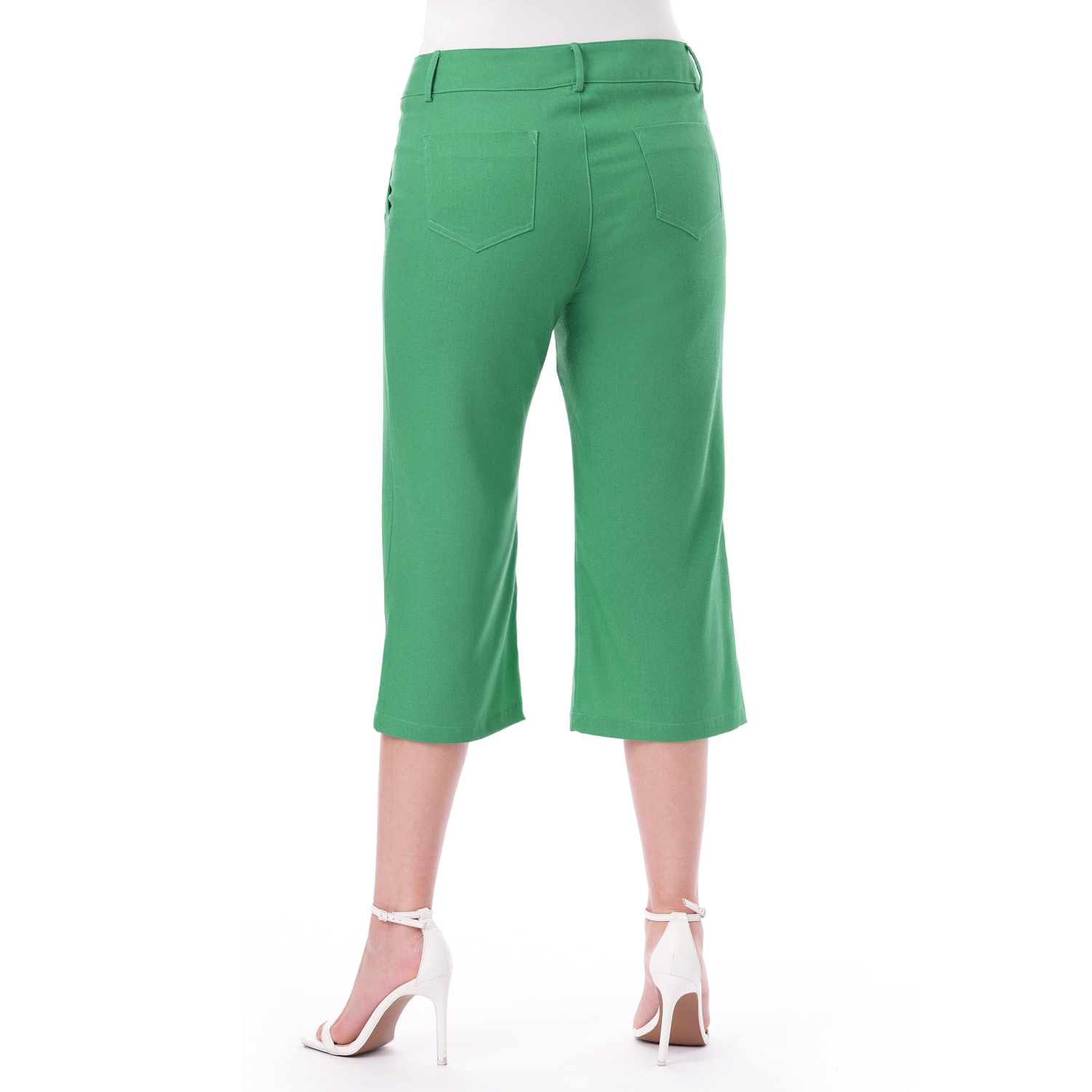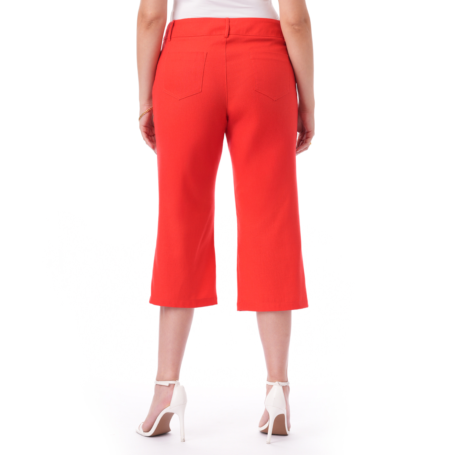 Este capri de color entero con bolsillos combina estilo y funcionalidad en una prenda versátil y fácil de llevar.