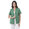 Esta chaqueta de manga corta con delicados detalles en tela aporta un estilo femenino y encantador. Su diseño ligero y elegante complementa tus looks con suavidad, creando un acabado moderno y lleno de frescura.