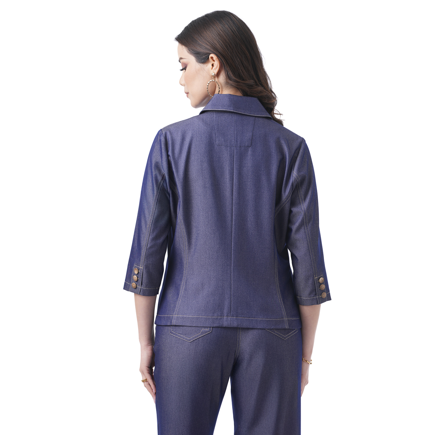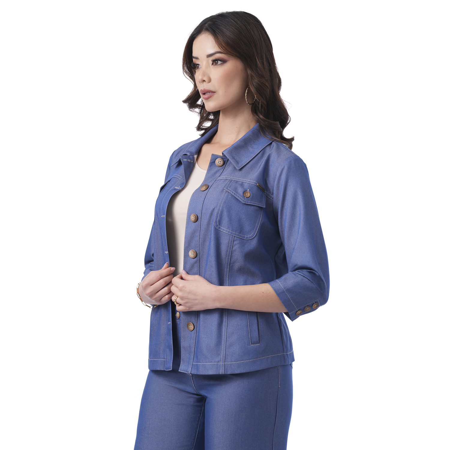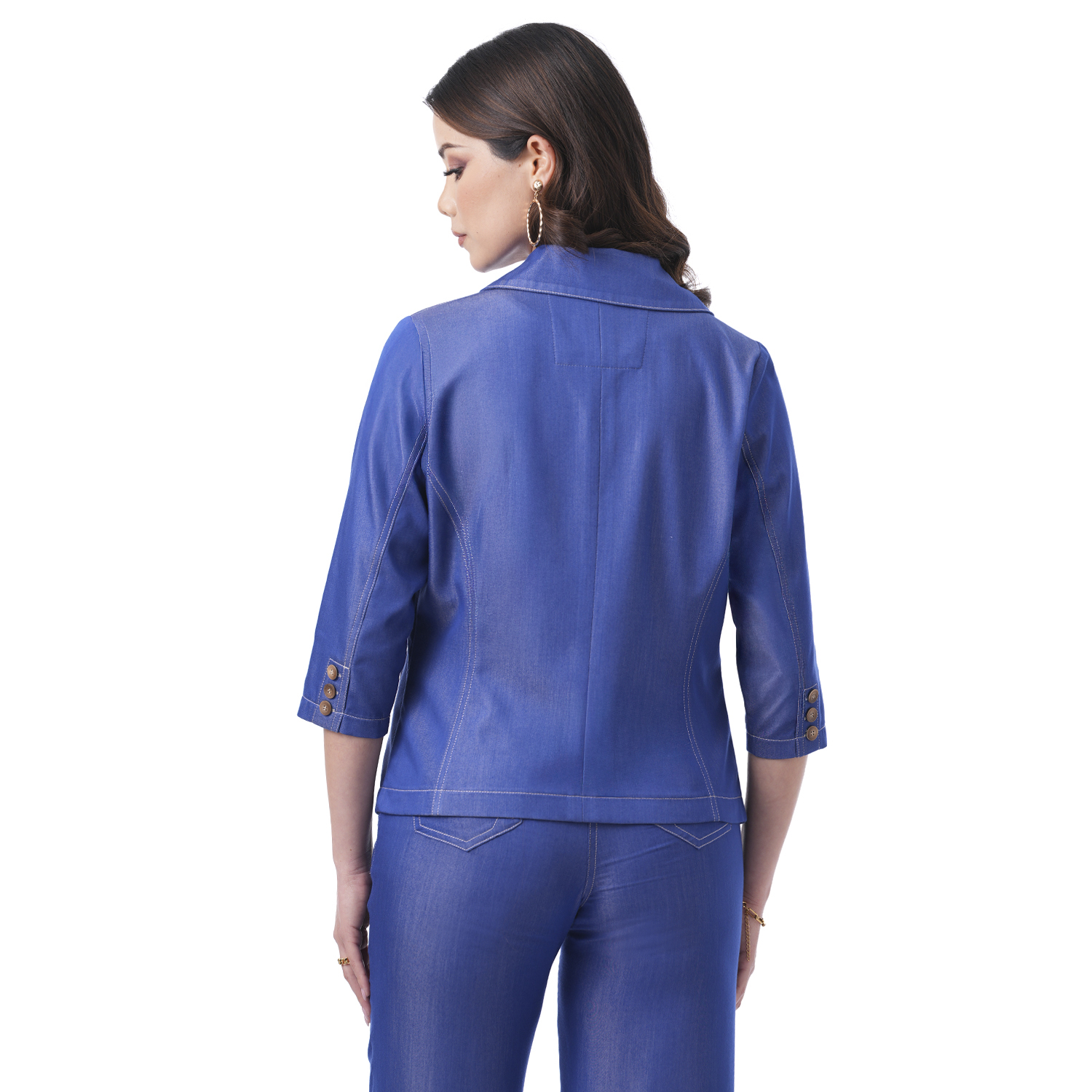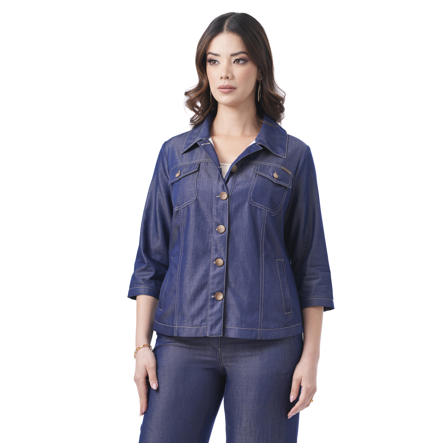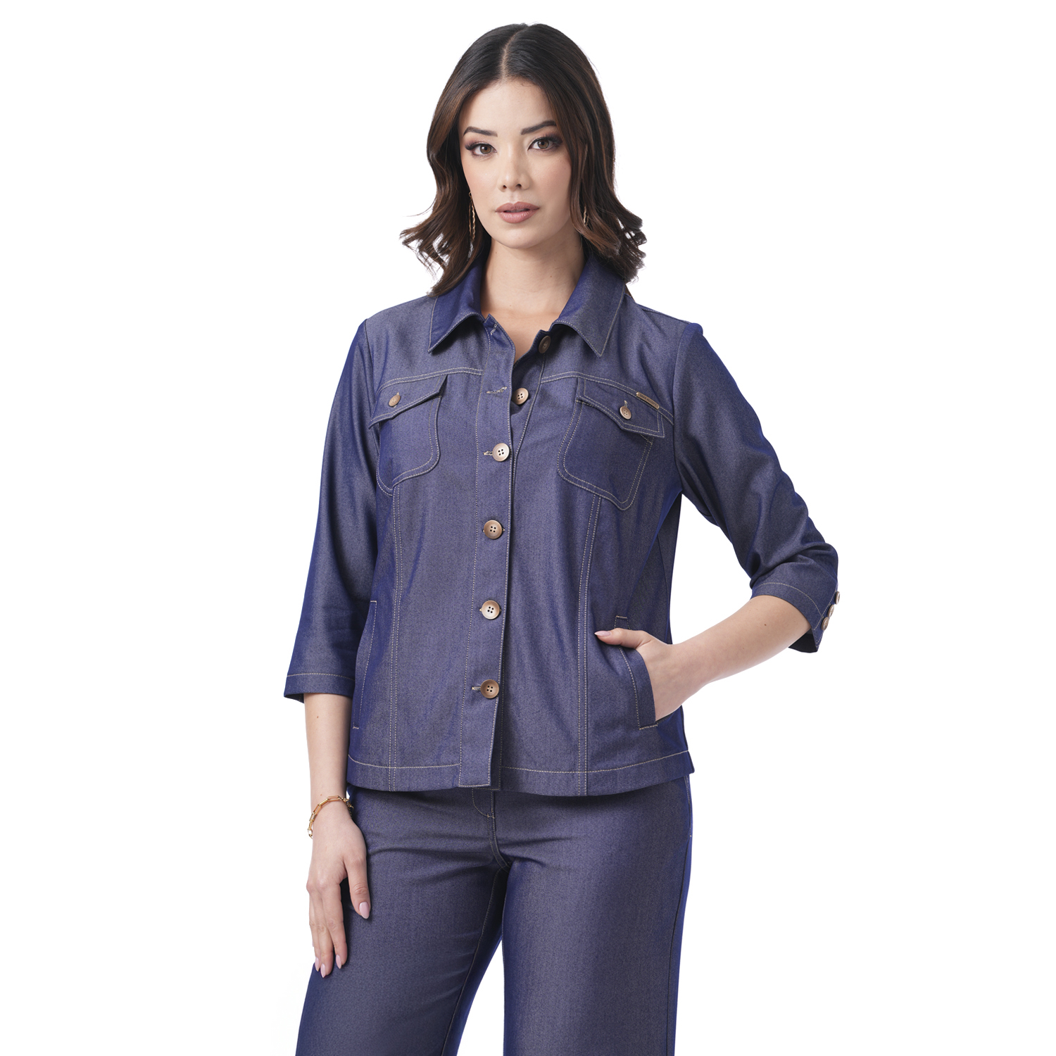 Esta chaqueta denim con delicados pespuntes aporta un estilo moderno con un toque femenino.