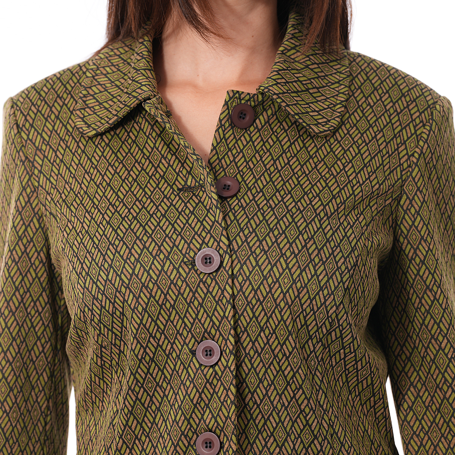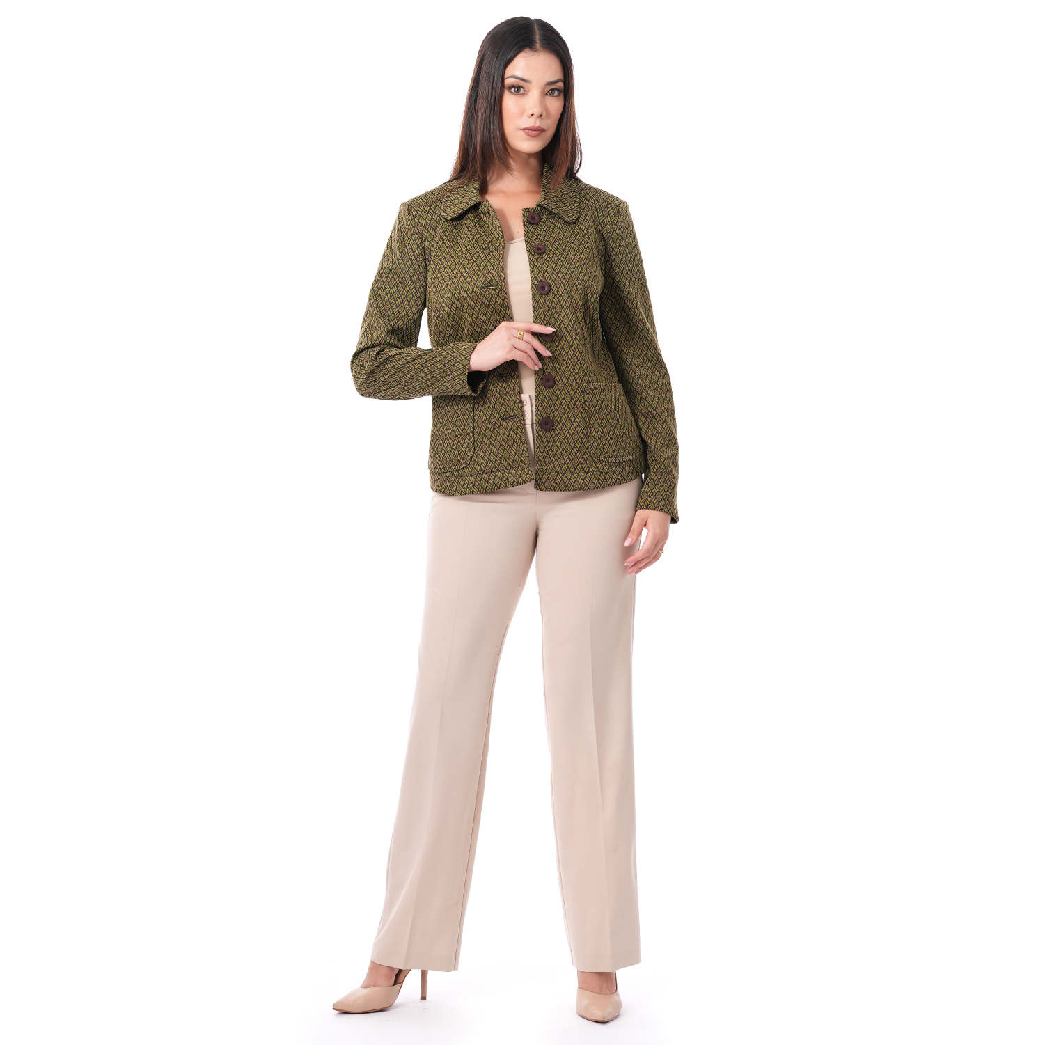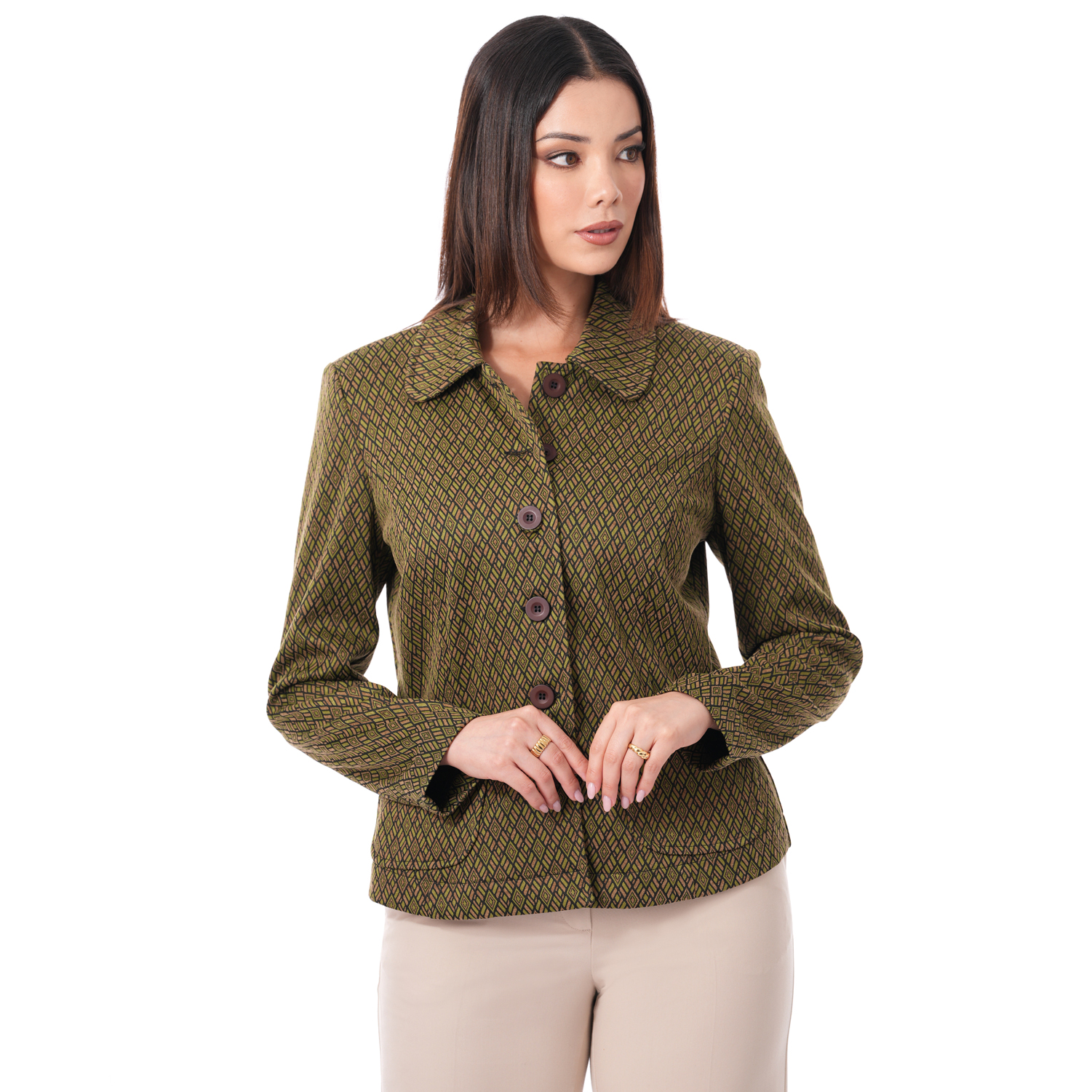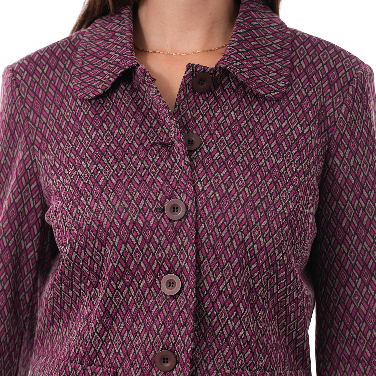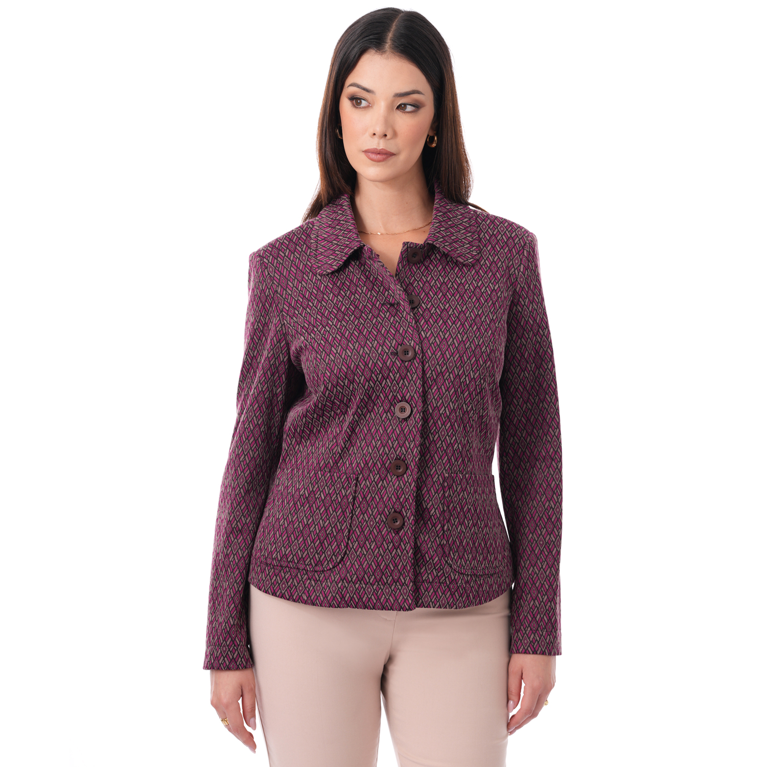 Esta chaqueta estampada de manga larga destaca por su diseño femenino y lleno de estilo.