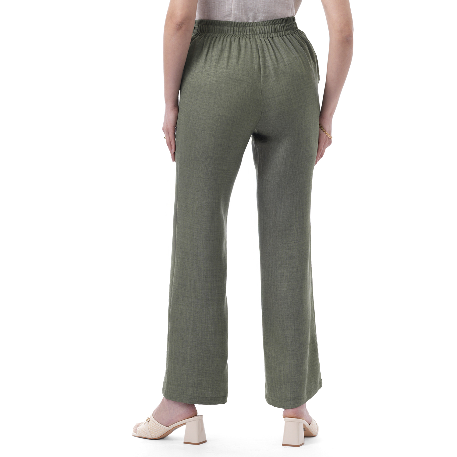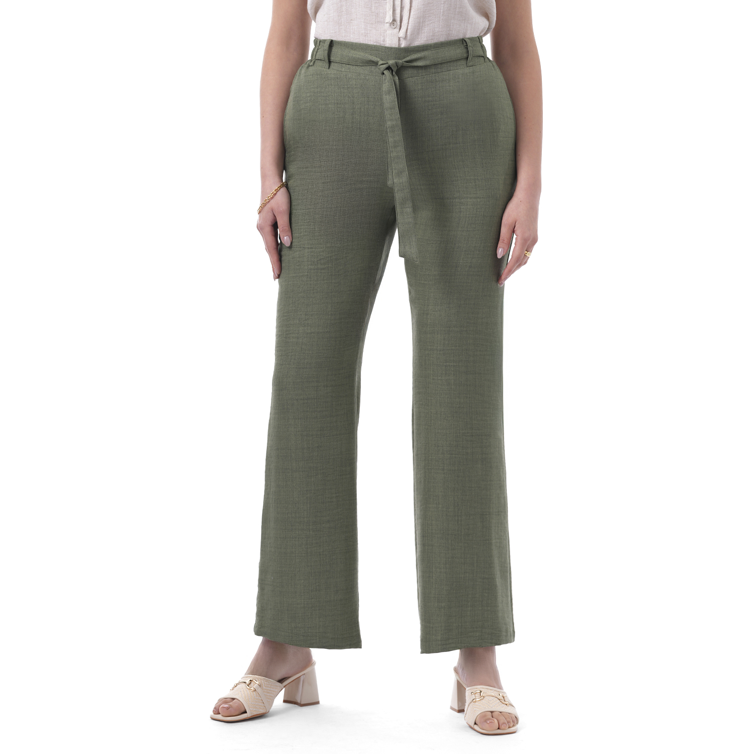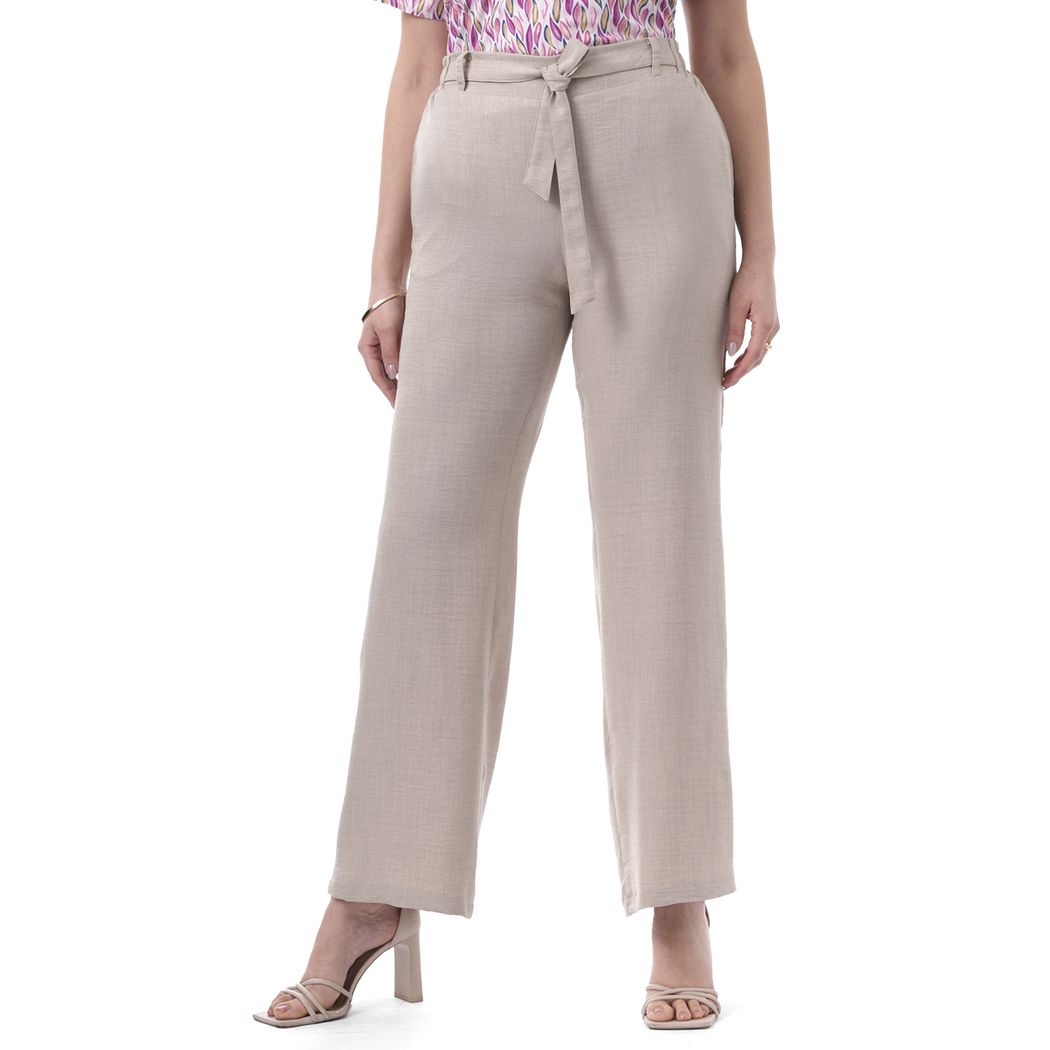 Este pantalón de color entero combina elegancia y comodidad en un diseño moderno y femenino. Su corte recto estiliza la figura, creando un look suave y versátil para cualquier ocasión.