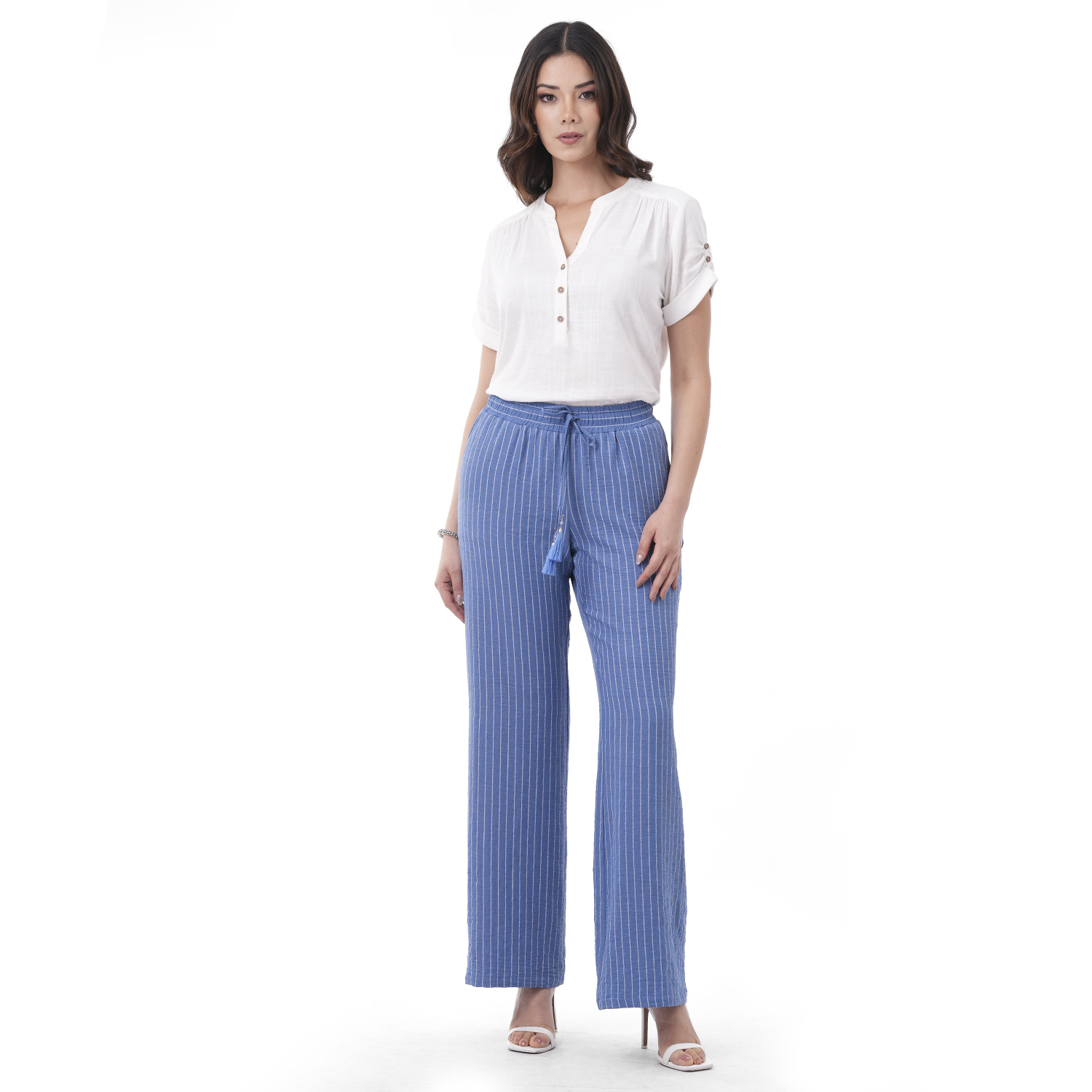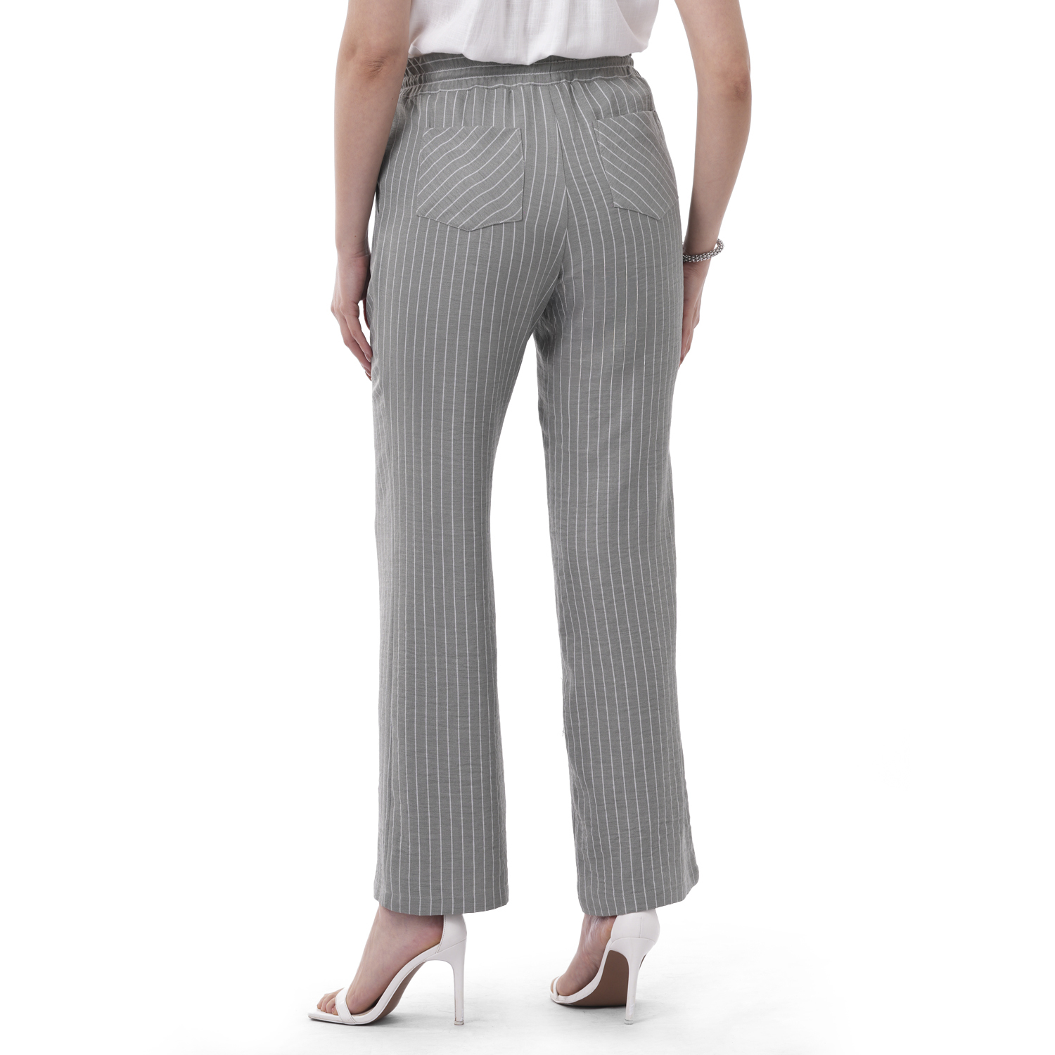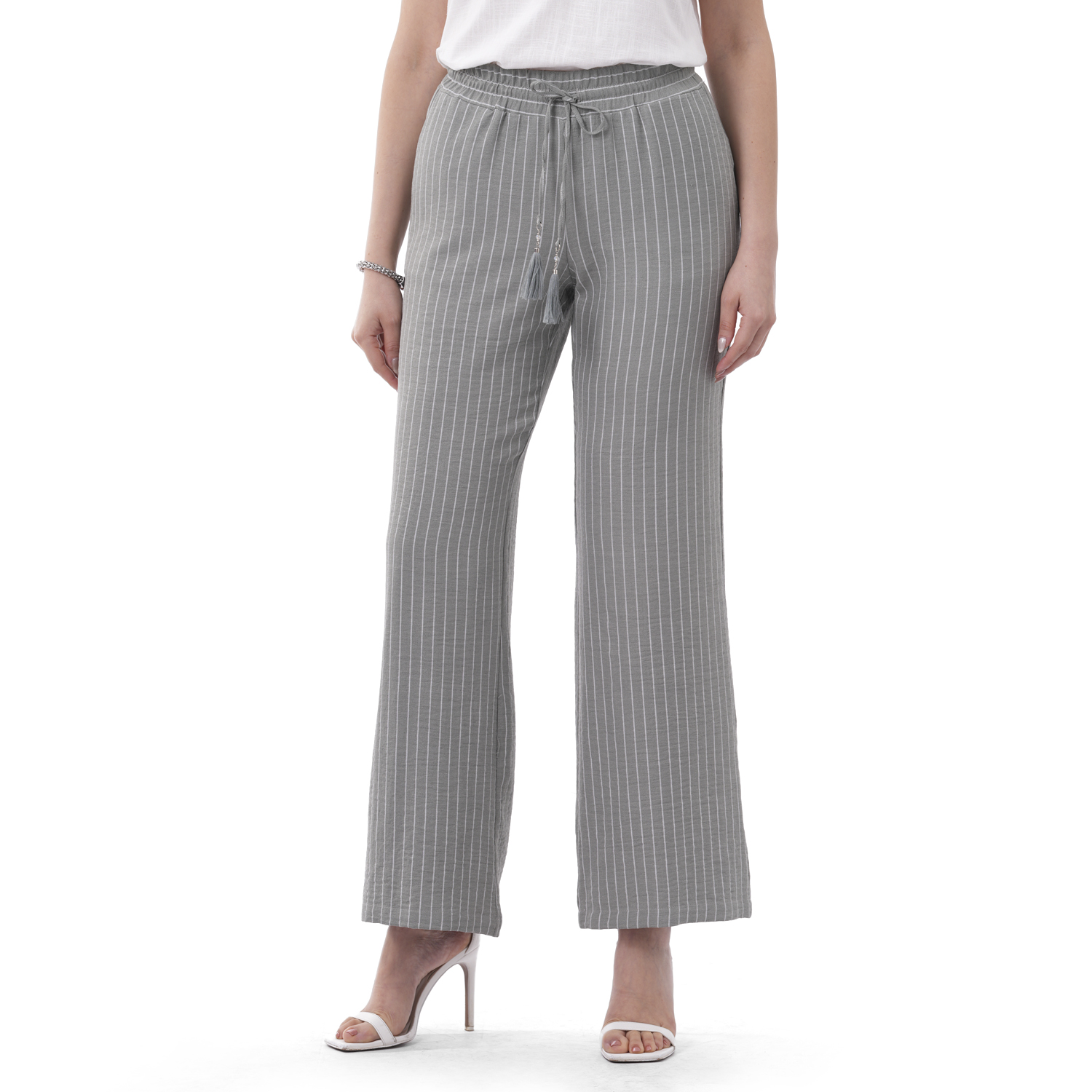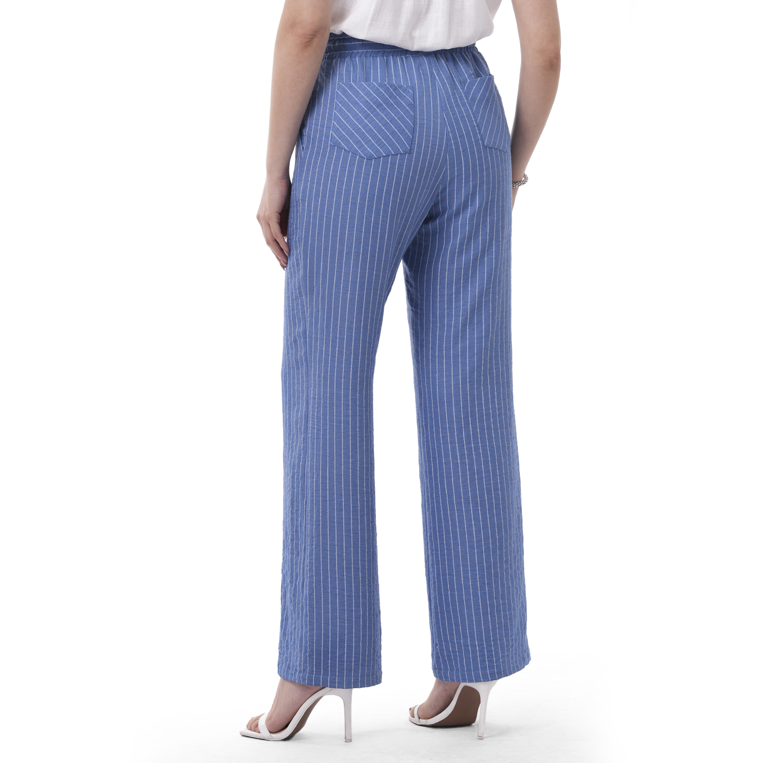 Este pantalón a rayas aporta un estilo moderno y sofisticado gracias a su diseño estilizado y elegante. Ideal para crear conjuntos contemporáneos con una presencia pulida y un aire actual.