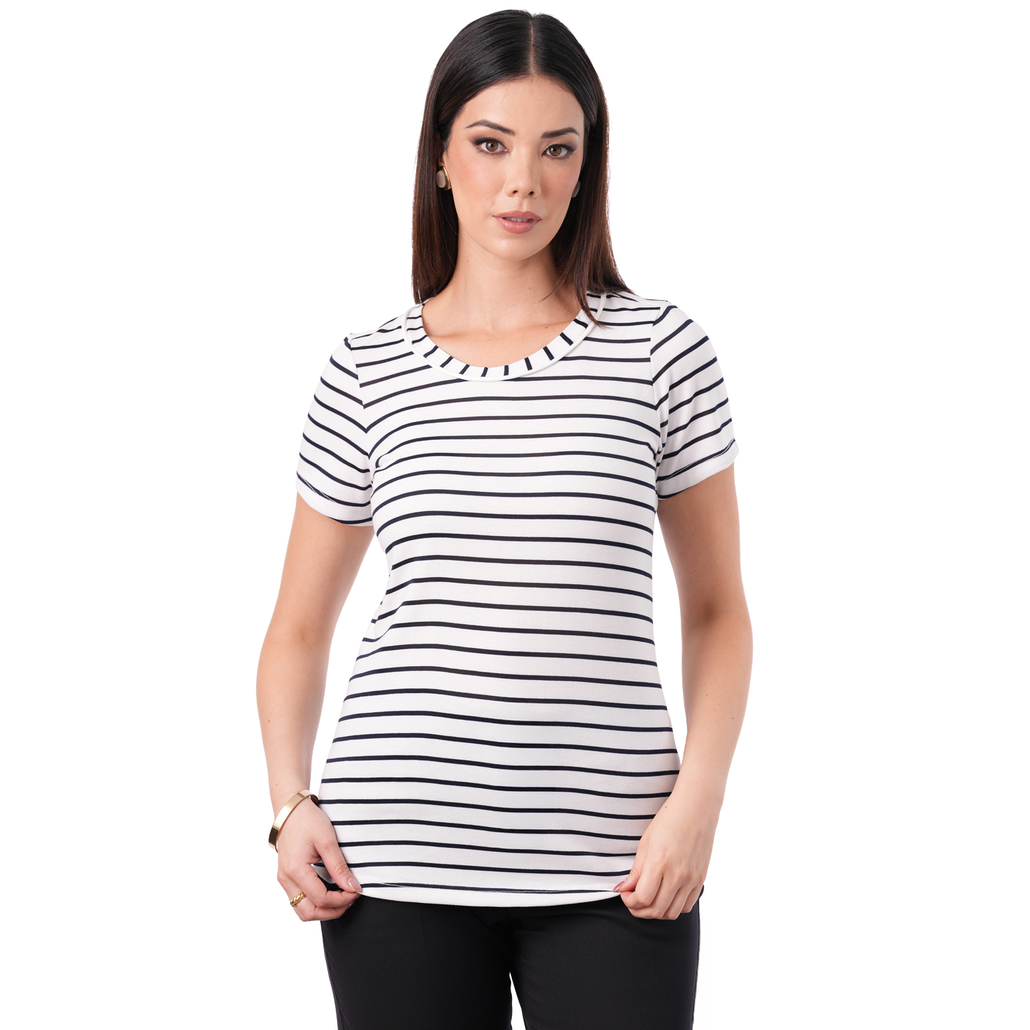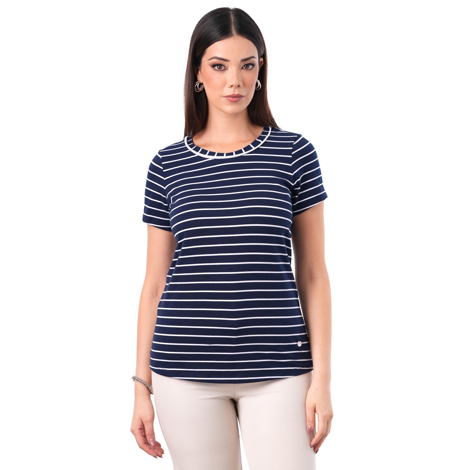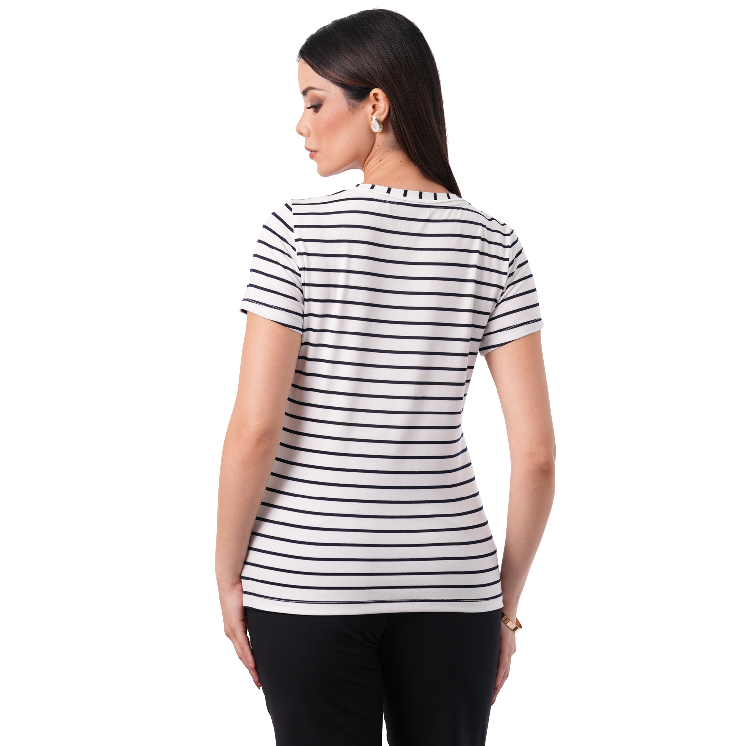 Este polo a rayas de manga corta ofrece un estilo fresco y versátil, perfecto para combinar fácilmente en distintos looks.