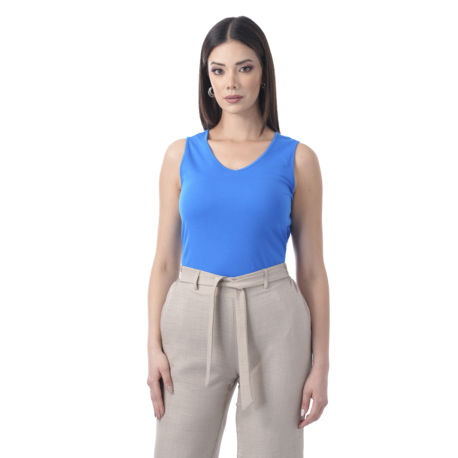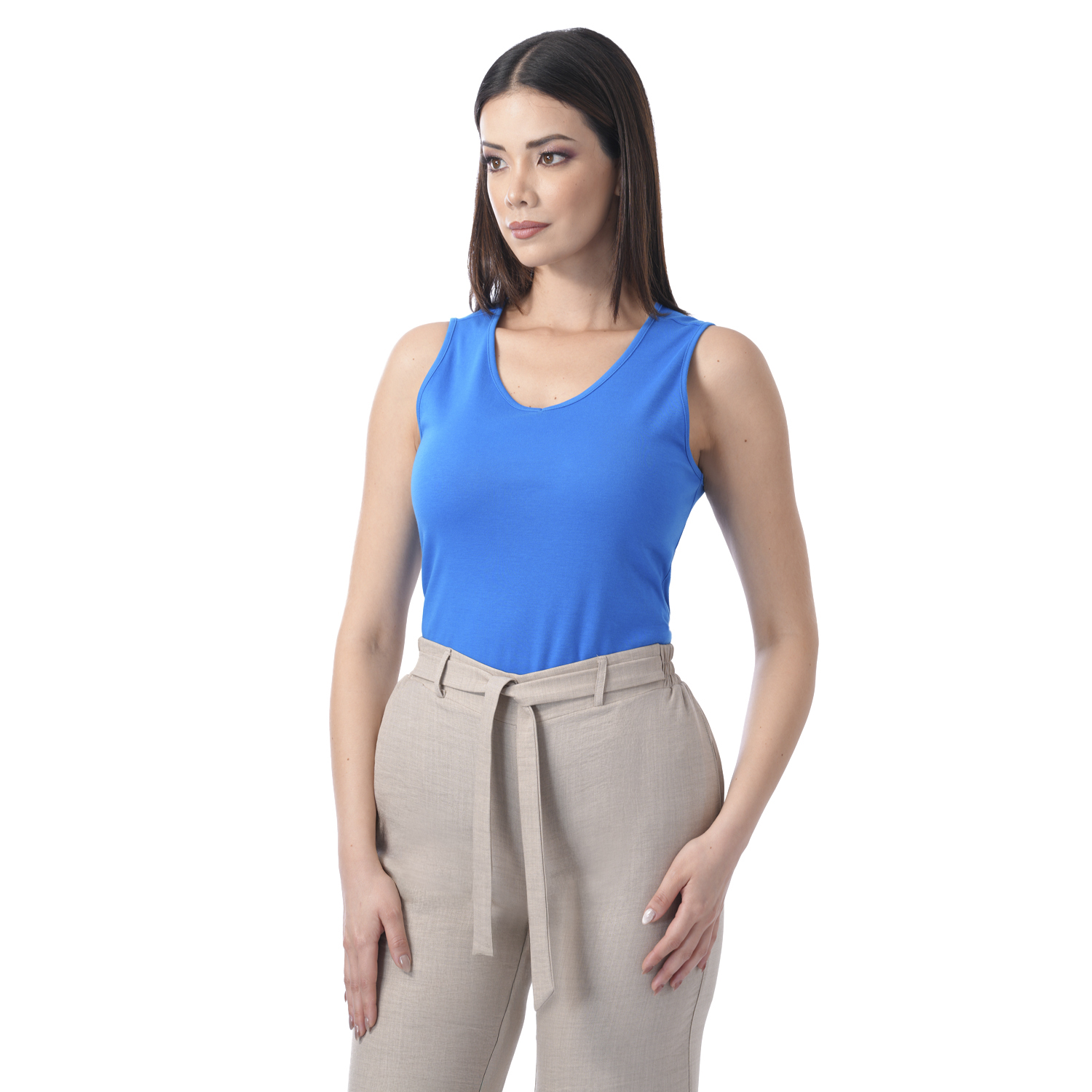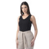 Este polo sin mangas de color entero destaca por su diseño limpio y moderno. Su estilo básico y sofisticado lo convierte en una pieza versátil, ideal para complementar diferentes tipos de outfits.