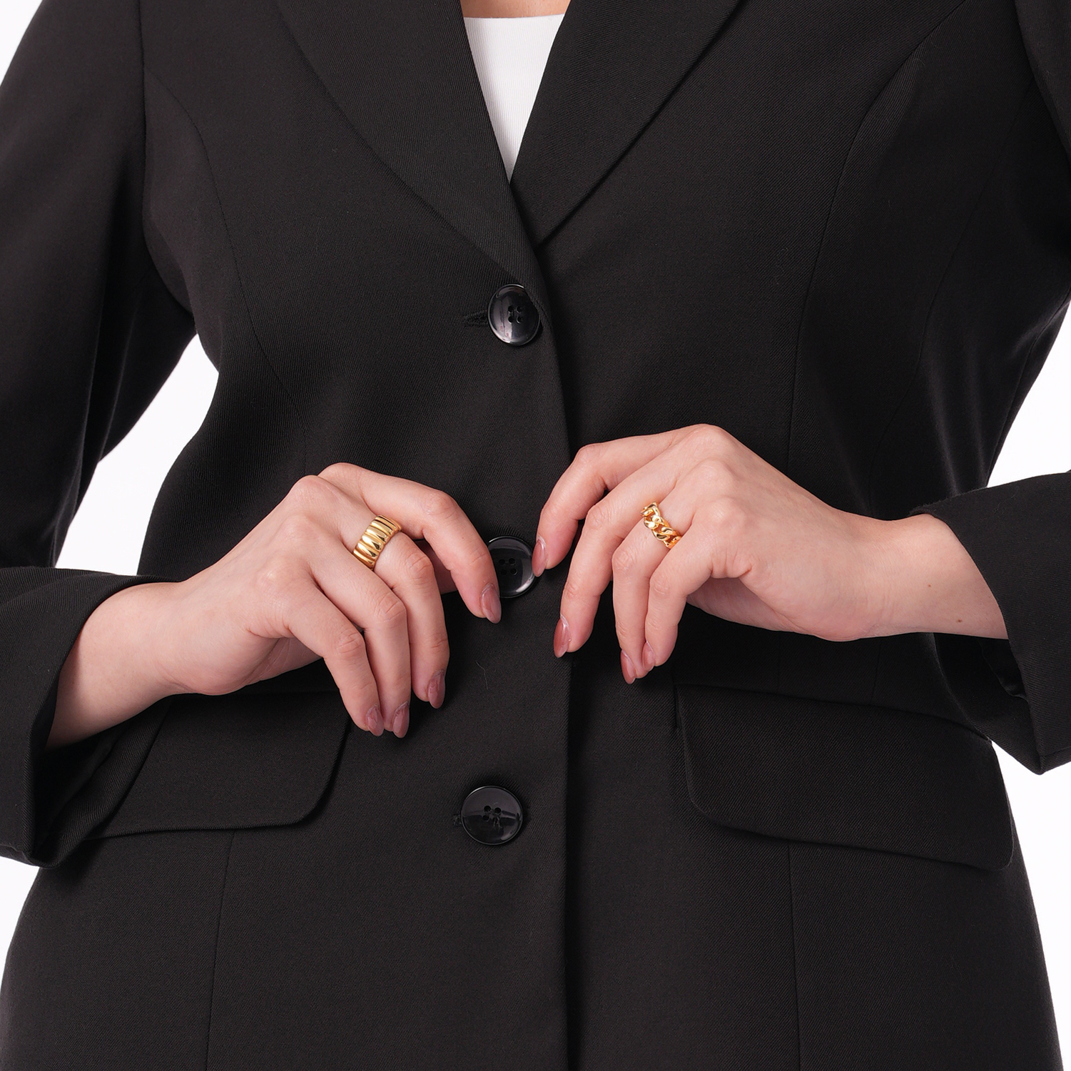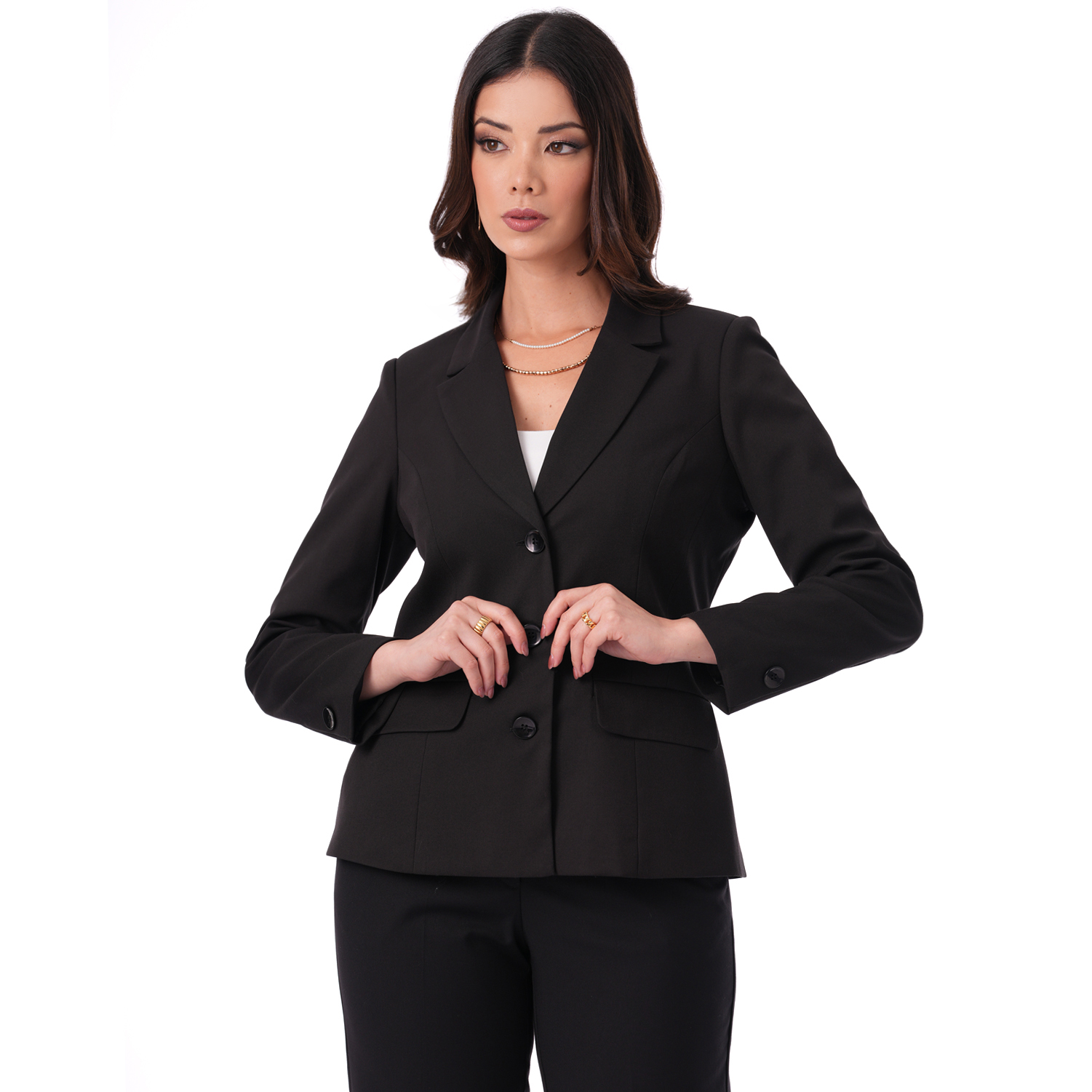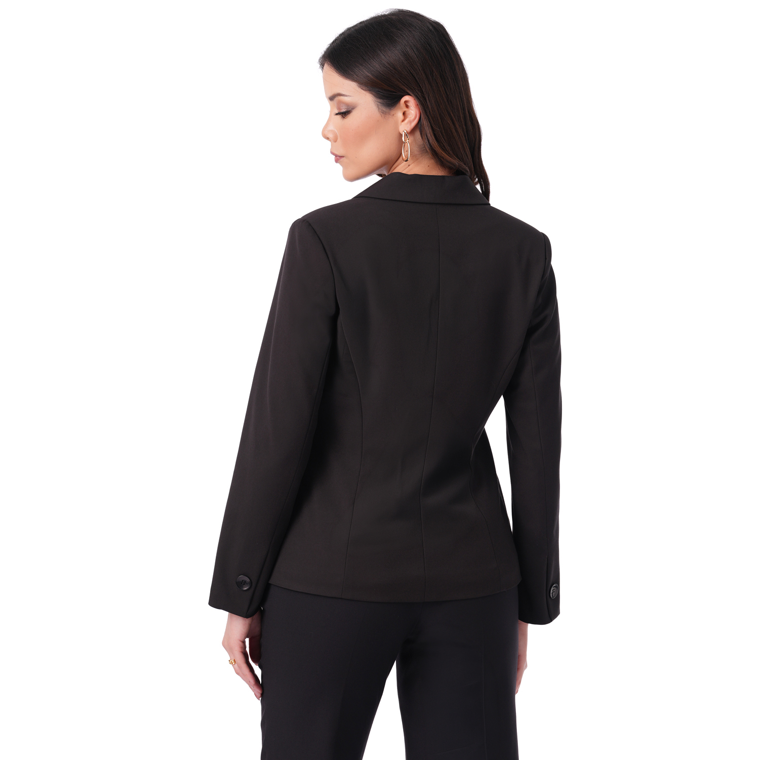 Saco clásico de color entero con manga larga, perfecto para completar tus looks con un toque elegante y versátil.