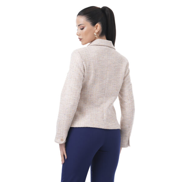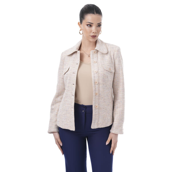 Este saco en fantasía combina texturas únicas y un diseño moderno que aporta un aire sofisticado a tu look. Su silueta estructurada y elegante lo convierte en una prenda ideal para destacar en cualquier ocasión.