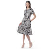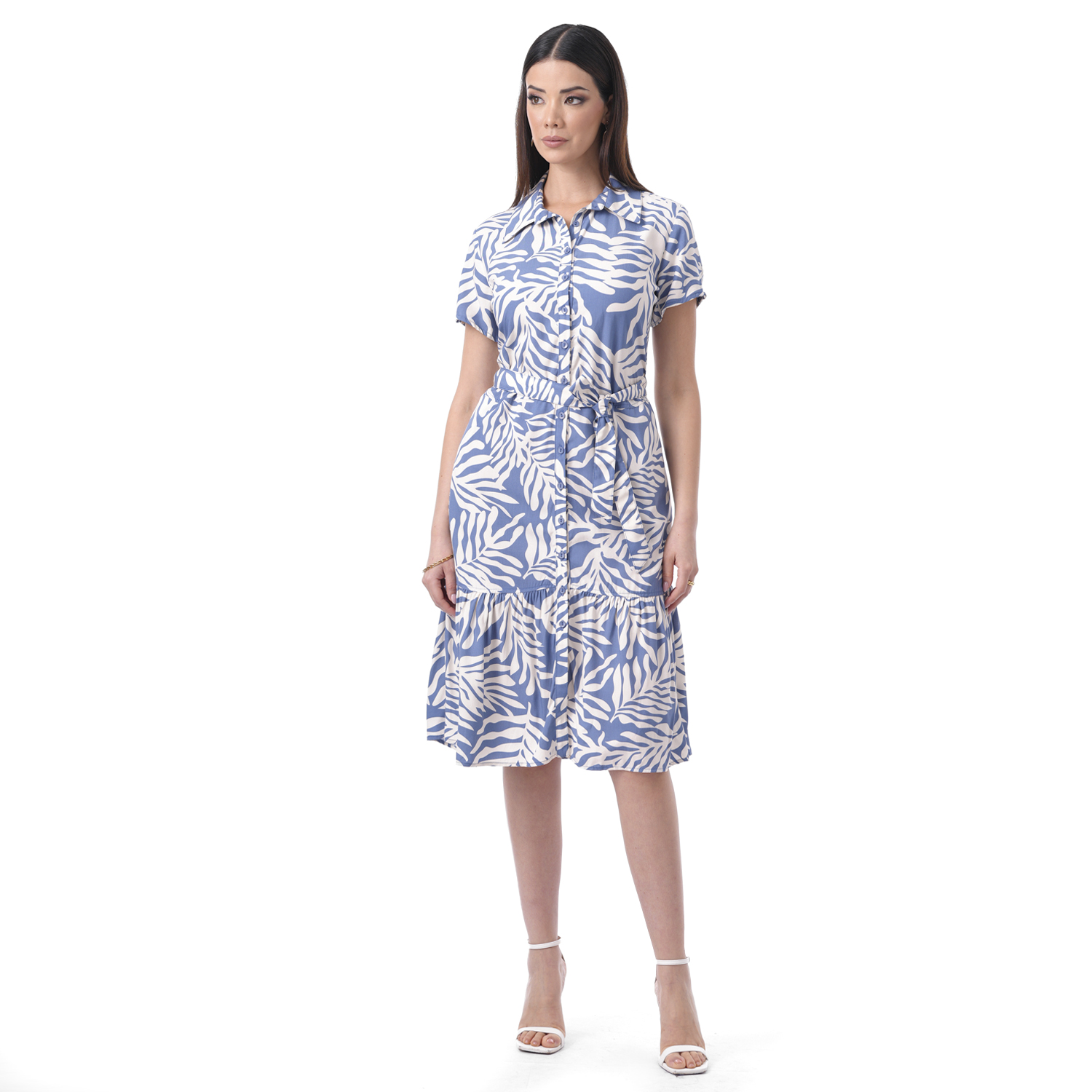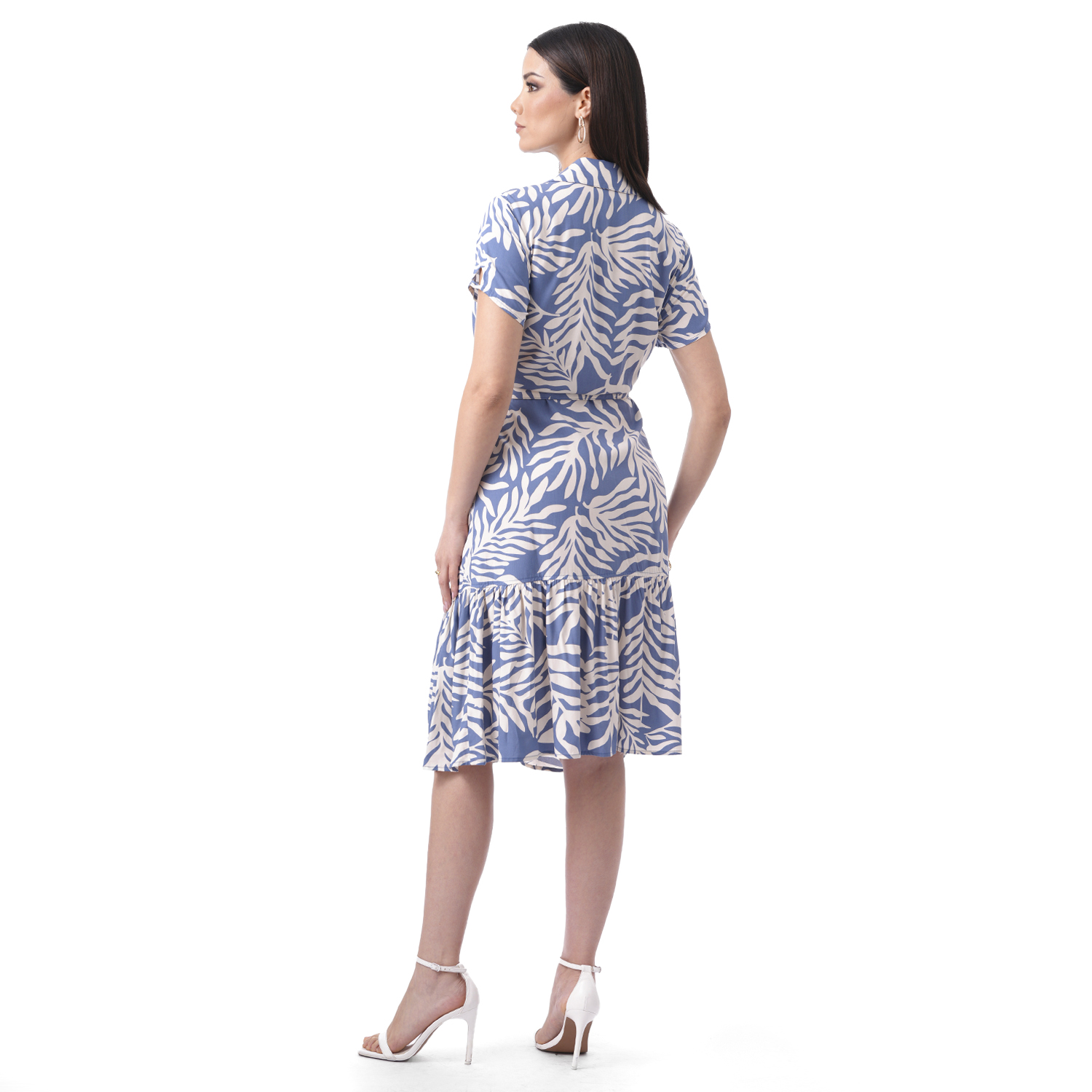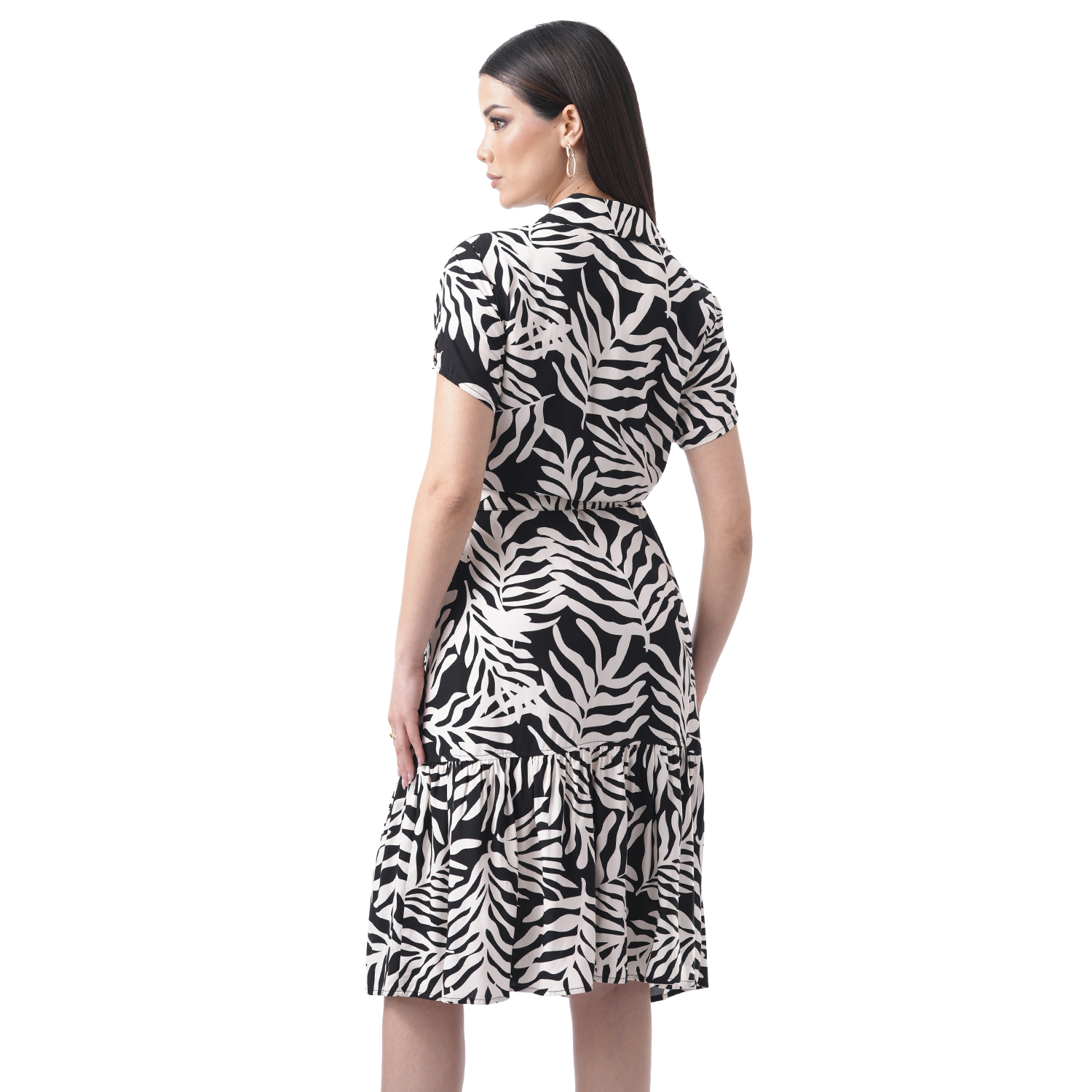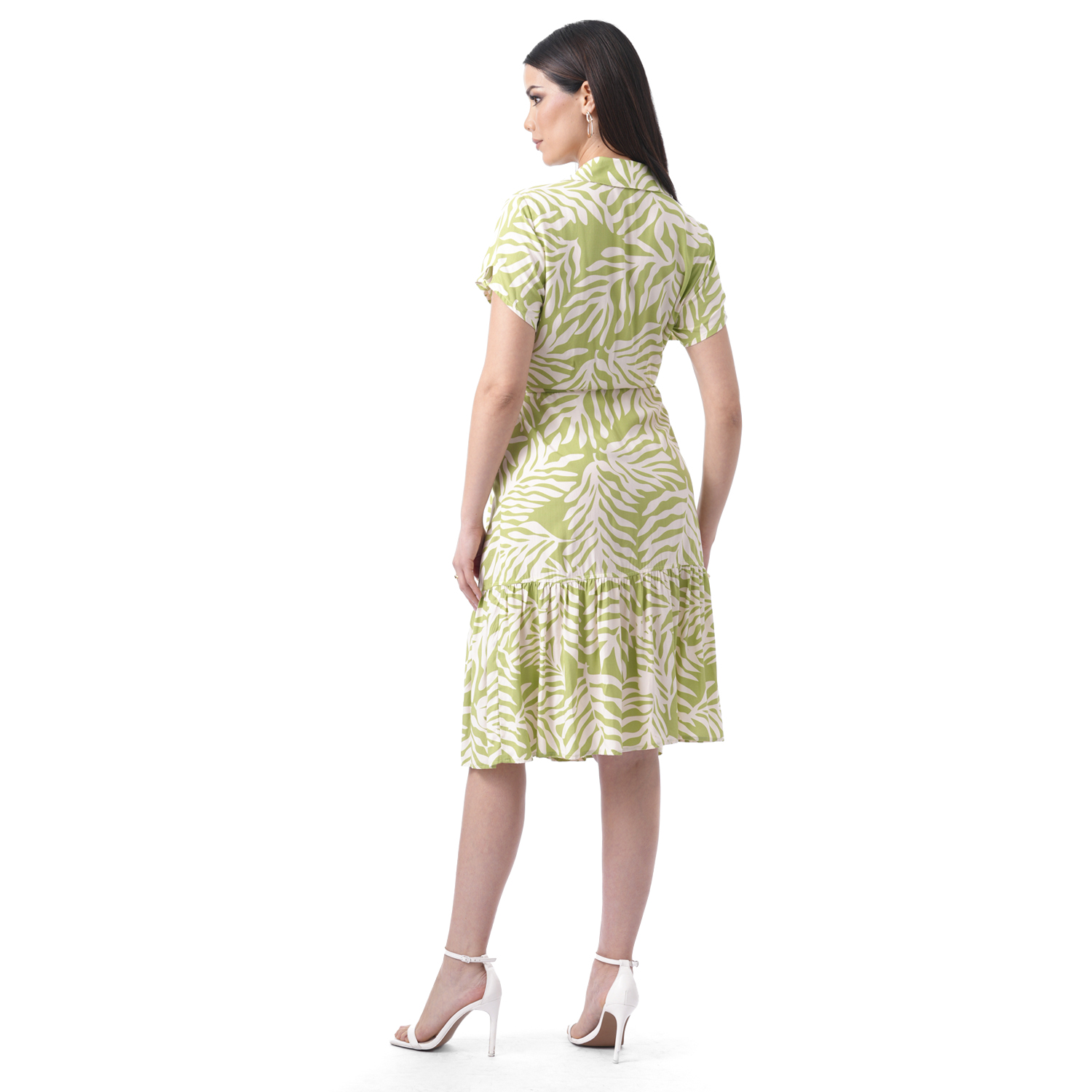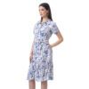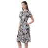 Este vestido destaca por su caída ligera y un estampado lleno de encanto. Su diseño de manga corta lo convierte en una opción fresca y cómoda para el día a día.